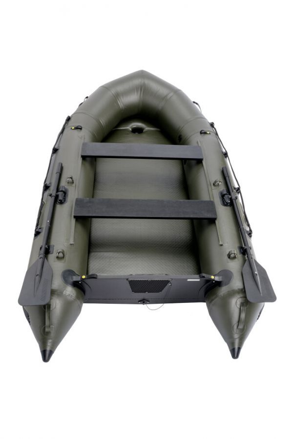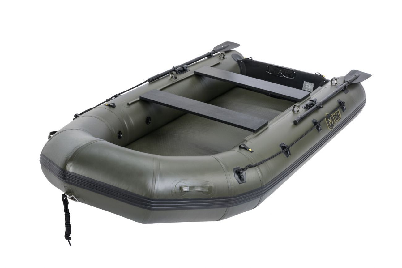 Druhá generácia nafukovacích člnov M-BOAT AWB, ktorá zachováva všetky výhody a unikátne vlastnosti tohto modelu a pridáva množstvo vylepšení. Nadštandardná šírka a špecifický tvar člna zaisťujú extrémne veľký vnútorný priestor. Ten je vždy výrazne väčší ako pri bežných člnoch rovnakej dĺžky na trhu. Tomu napomáha aj špecifické riešenie zadnej časti plavákov, ktoré dovoľuje umiestniť zrkadlo čo najbližšie ku koncu plavákov a zároveň zachovať ich funkciu pri udržiavaní smeru jazdy. Výrazne zdvihnutý predok spolu so špeciálnym tvarovaním prednej časti, mohutným nafukovacím kýlom v celej dĺžke podlahy a špeciálne tvarovaným zrkadlom zaisťujú vynikajúce hydrodynamické vlastnosti člna a smerovú stabilitu. To v praxi znamená vyššiu rýchlosť, ľahšie ovládanie a nižšiu spotrebu energie pri pohone člna. Zosilnený materiál plavákov zvyšuje odolnosť proti prerazeniu. Nafukovacia podlaha so zdvojenou nášľapnou vrstvou je takmer nezničiteľná a jej zelená farba skvele ladí s so sfarbením člna aj čiernymi veslami a ostatnými doplnkami. Každý čln je vybavený radom upínacích pásikov na suchý zips v prednej časti aj na zrkadle. Nájdeme tu aj masívny upínací popruh na príslušenstvo v strednej časti.