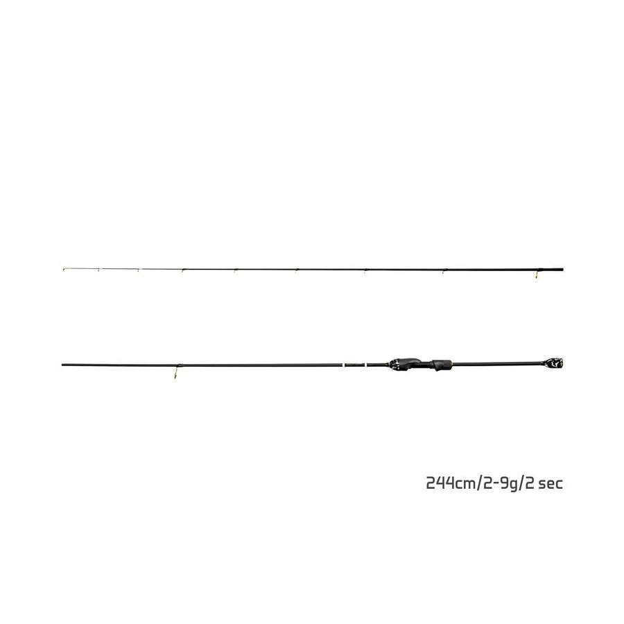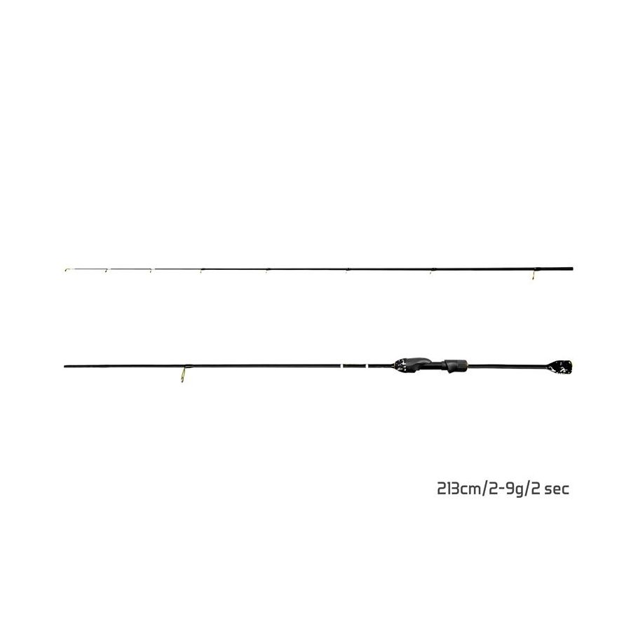 Základ prúta tvorí 24T matný blank s jemnou povrchovou štruktúrou. Ten dodáva produktu potrebnú pevnosť a zároveň citlivosť, ktorá je pri tak jemnej prívlači nevyhnutným faktorom. Tuhosť a rýchlosť blanku je navýšená vloženou karbónovou špičkou s bielym viazaním posledných očiek, vďaka ktorej budete nie len cítiť ale aj vidieť každý útok dravej ryby na vašu nástrahu. Vyvážený blank umožňuje presné hody na cieľové miesto ale taktiež skvelý pôžitok zo zdolávania. Po celej dĺžke je osadený kvalitnými očkami v zlatej edícii, ktoré sa výborne hodia k matnému čiernemu dizajnu. Krátka rukoväť zabezpečuje bezproblémovú manipuláciu s prútom počas lovu a vďaka jej dĺžke nehrozí zamotávanie do oblečenia a podobné nepríjemnosti. Kvalitné Seaguide sedlo navijaka je navrhnuté v pomerne netradičnom tvare, čo dodáva prútu punc originality. Mäkčené, čierno biele prvky z EVA
