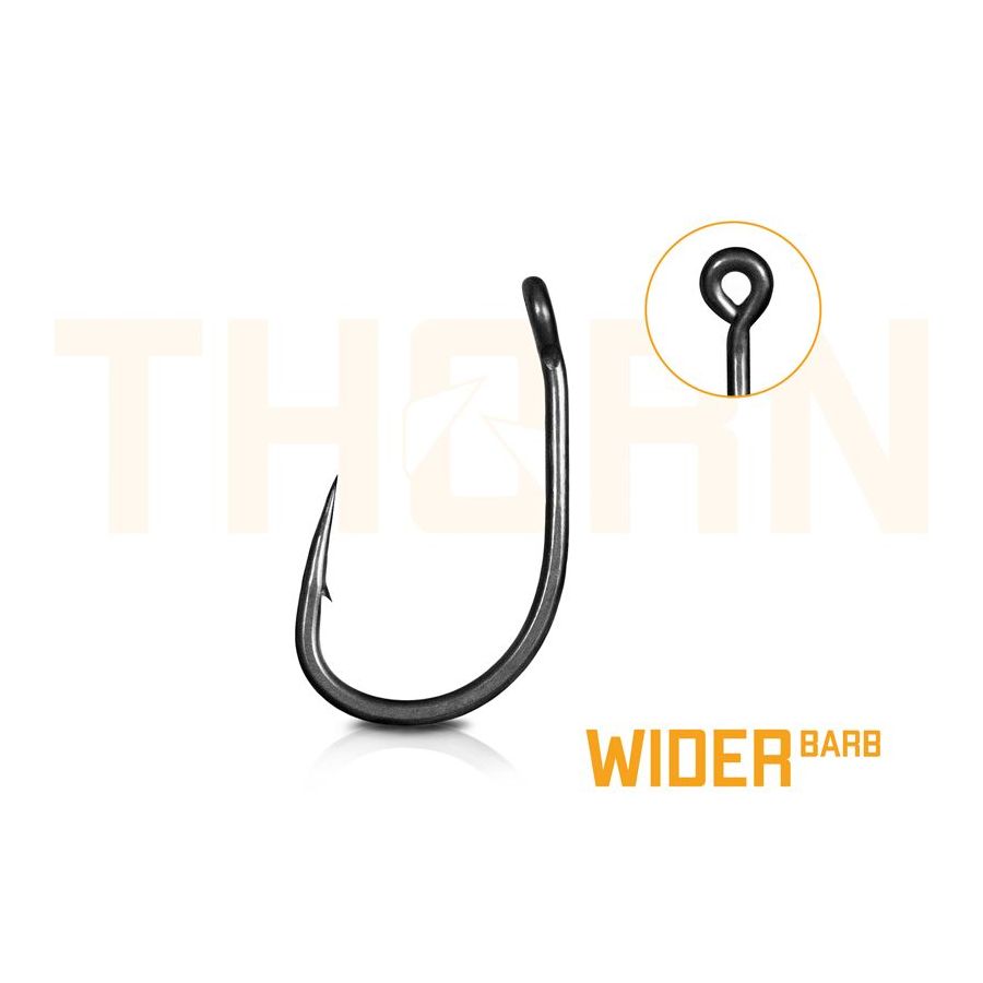 THORN Wider je špecifický svojím priam už legendárnym tvarom typu wide gape. Ide o háčik charakteristický širším oblúkom a rovným ramienkom. Vďaka týmto parametrom ide o veľmi univerzálny a spoľahlivý háčik, ktorý je možné využiť pri rôznych nadväzcoch a nástrahách.