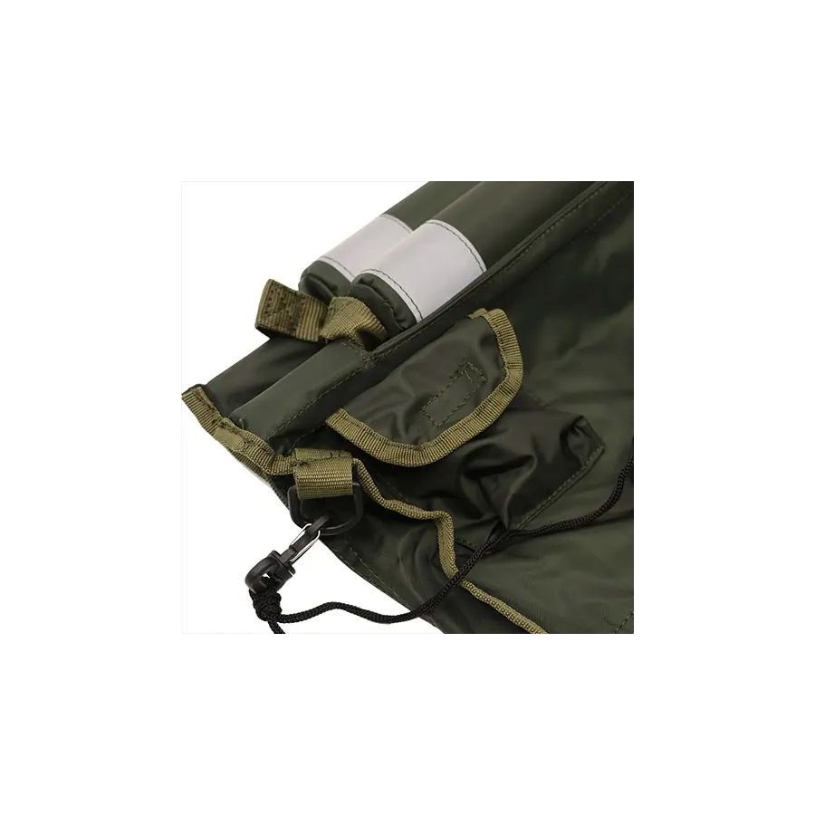 Vrchná časť je pokrytá z oboch strán jemnú clonou, ktorá necháva pozvoľna prenikať svetlo do jadra saku a tým má ryba pocit, ako by bola pod hladinou vody, je potom viac v pokoji a lepšie spolupracuje. Špecifikácia: - dlhá štvormetrový šnúra s integrovaným závitom na konci sa stará o bezpečné upevnenie do zavŕtavacích tyčí - ďalej obsahuje 3/8 BSF klip pre upevnenie saku na štandardnú tyč - Hi-Vis reflektívnej popruhy upozorňujú na presnú pozíciu saku pri slabšom svetle alebo v tme - silné sklolaminátové tyče zaručujú pevnosť a ľahkosť - zips po celej dĺžke saku zaistí bezpečie pre rybu, zatiaľ čo je v saku - sak bol navrhnutý tak, aby ryba mala dostatok miesta, ale aby tiež moc nezpohodlněla, t edy né príliš veľa miesta na to, aby sa mohla otočiť - rozmery: 150cm x 60cm - váha v stave mokrom bez ryby: 3LB 5oz Odkaz na video: http://www.youtube.com/watch?v=EsU6EmM5wAg