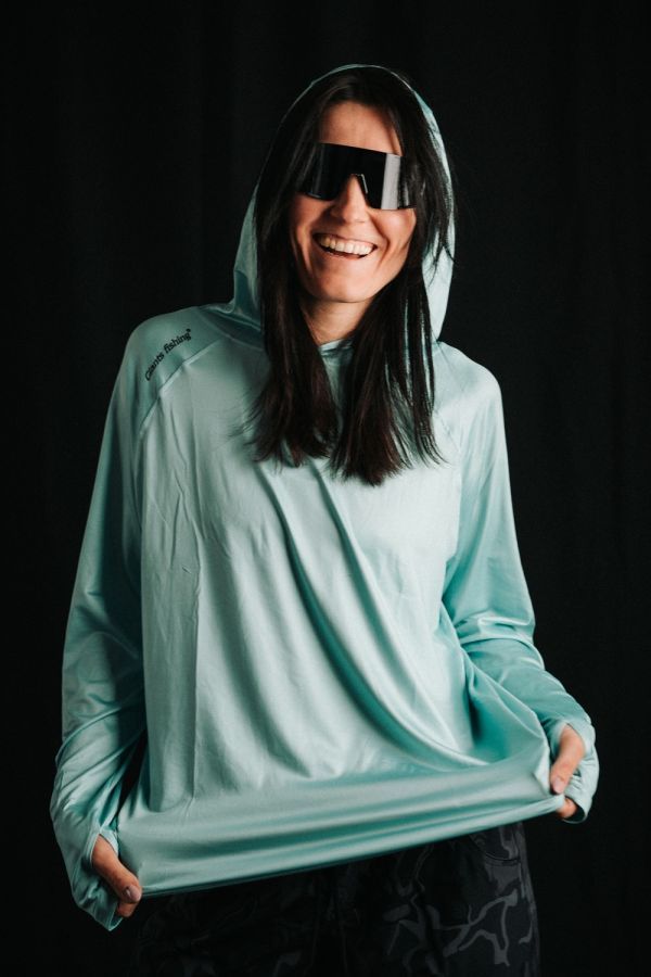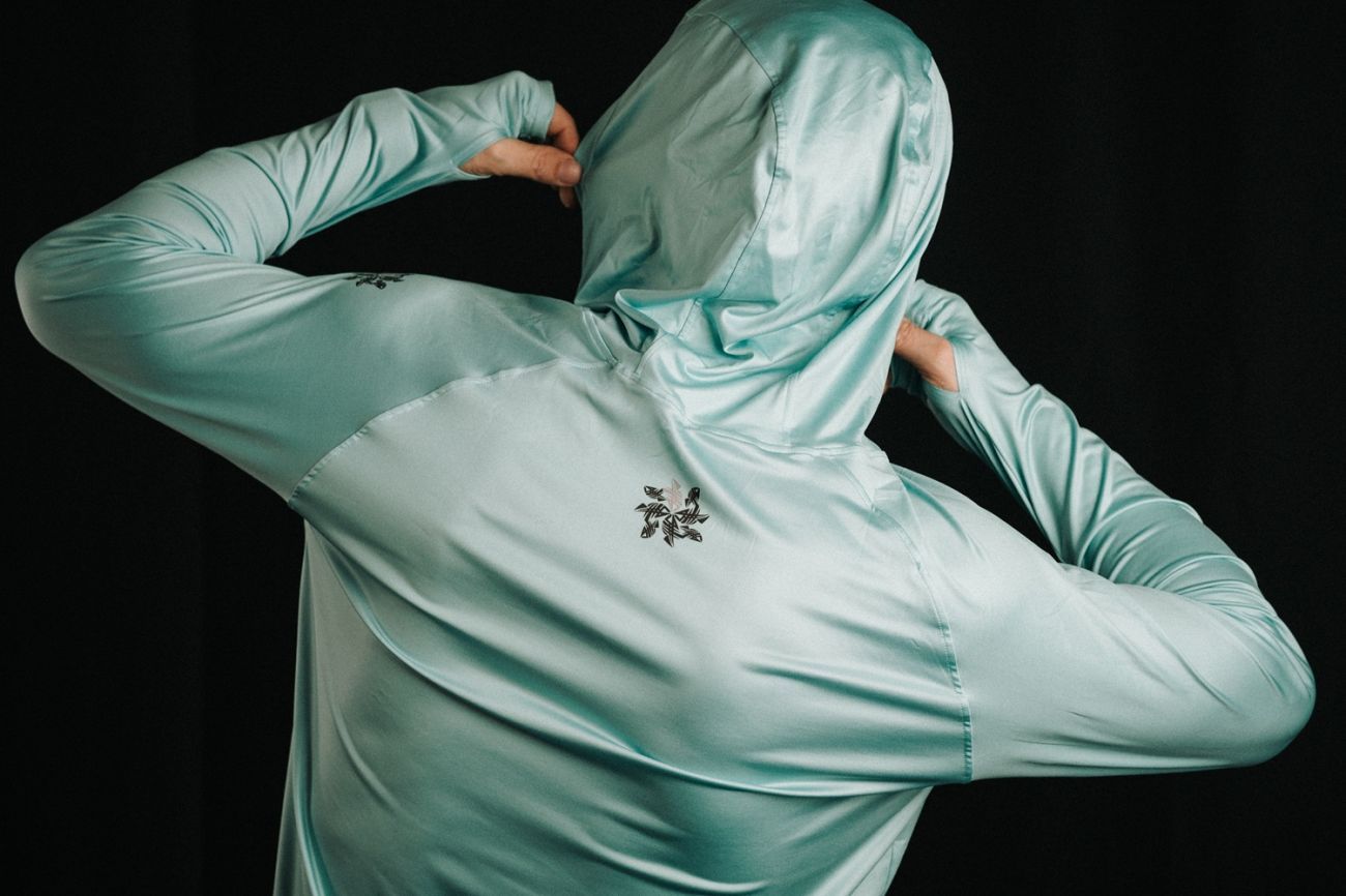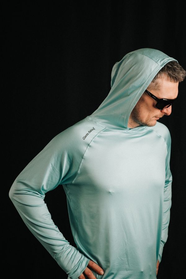 UV tričko s dlhým rukávom a kapucňou, ktoré má ochranný filter UPF50+ a poskytuje maximálnu ochranu proti škodlivým slnečným lúčom, takže sa môžete sústrediť na rybolov bez obáv z prehriatia alebo spálenia.