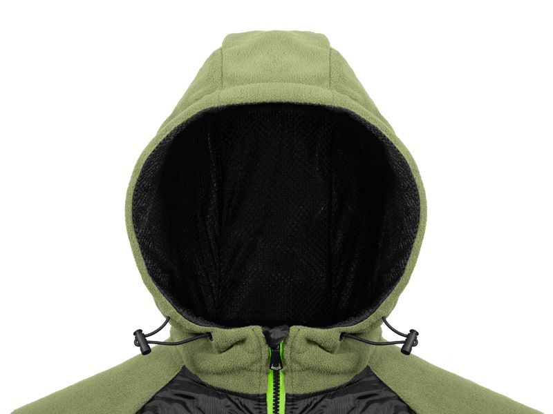 Stred bundy tvorí ľahký, prešívaný panel, ktorý účinne chráni pred vetrom a chladom, zatiaľ čo rukávy, boky a kapucňa sú pre maximálne pohodlie a voľnosť pohybu vyrobené z na dotyk prijemného mäkkého flísu, ktorý zahreje aj počas sychravých dní. Nastaviteľná kapucňa je zvnútra doplnená priedušnou sieťkou, ktorá zvyšuje komfort pri aktívnom nosení a zabezpečuje lepšiu ventiláciu.