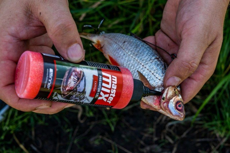 Master Mix Predator Gel je založený na proteínových a aromatických zlúčeninách. Intenzívna farba a pridanie trblietok, ktoré imitujú šupiny stratené rybou po útoku dravca. Je ideálny na použitie pre všetky druhy umelých nástrah, zatraktívnenie mŕtvej nástrahovej rybky alebo jej časti (chvostík, hlava). Gél spôsobuje intenzívnu reakciu a dráždi predátorov k útoku. Vďaka jeho zloženiu sa gél prilepí priamo na nástrahu a pomaly sa rozpúšťa vo vode a zanecháva intenzívnu vôňu a chuť. Špeciálny uzáver zabraňuje úniku gélu. Plochá a praktická tuba ľahko padne do každého vrecka alebo vesty. Pred zavedením Master Mix Predator Gelu na trh, bol dlhodobo testovaný našimi testermi s veľmi dobrými výsledkami.
