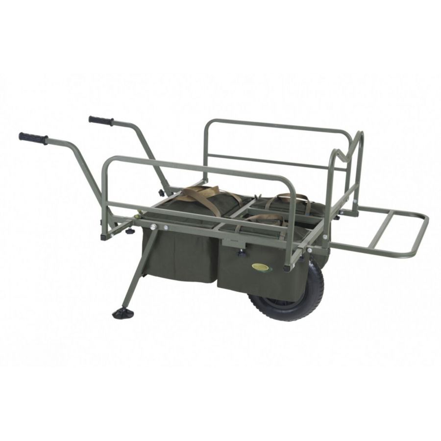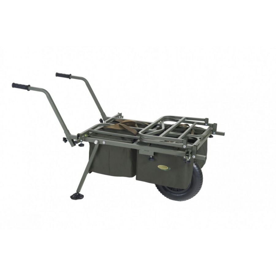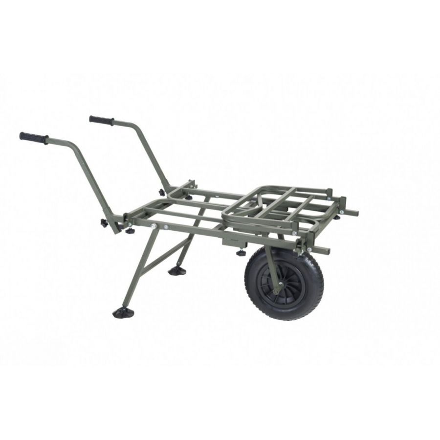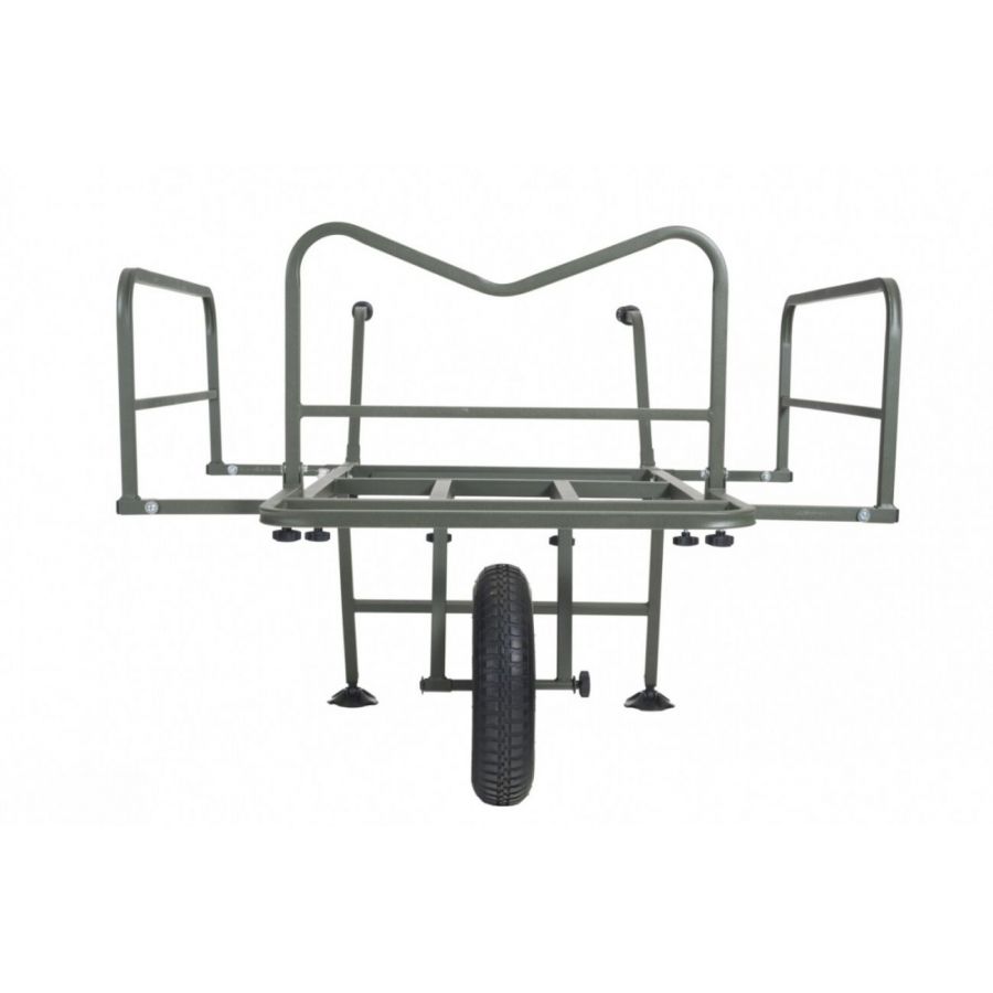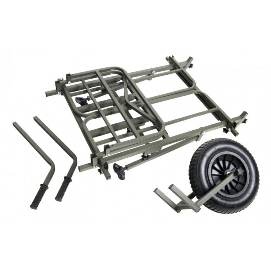 Nekompromisný a dokonale variabilný systém pre prepravu kompletnej výbavy na lovné miesto. Rám vozíka umožňuje jednoduchú prepravu aj najväčších XXL transportných tašiek v prednej časti a bočné výsuvné diely vytvorí dostatočne veľký priestor pre bivak, lehátko, kreslo a ďalšie doplnky. Systémové tašky s prakticky riešeným uchytením v ráme pomocou kovových obručí pojmú veľké množstvo drobnejšieho príslušenstva. Pohodlné a výškovo nastaviteľné rukoväte spolu s výborne navrhnutým ťažiskom zaisťujú jednoduchú ovládateľnosť plne naloženého vozíka. Ak je potrebné prepraviť naozaj ťažký náklad, je možné k vozíku veľmi ľahko pridať druhé kolo a zvýšiť tak jeho reálnu nosnosť.