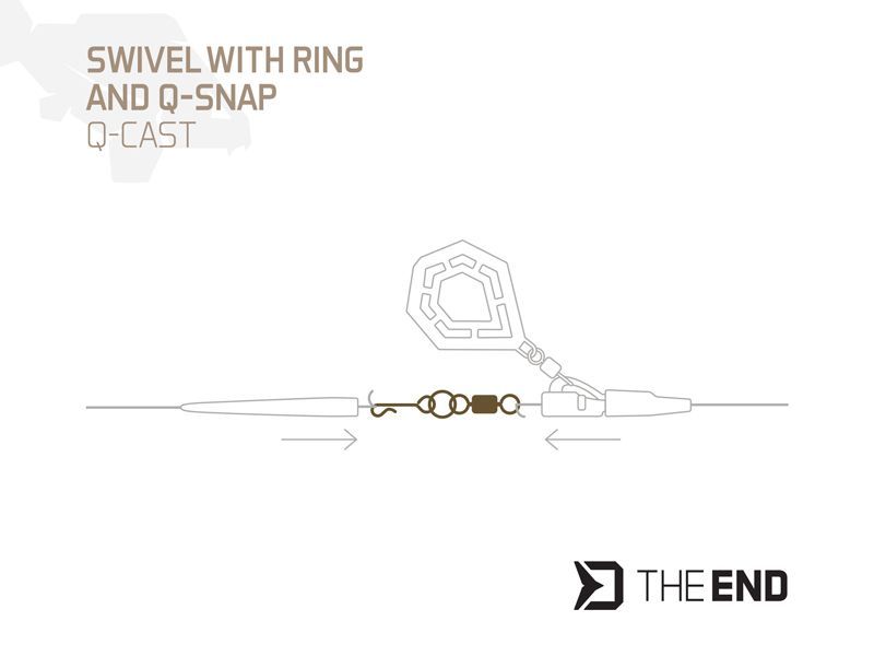 TheEND Q-Cast je špeciálny obratlík s krúžkom a rýchlovýmenným klipom, vhodný najmä na koncové kaprárske montáže, určené na ďaleké nahadzovanie či maximálne prirodzenú prezentáciu nástrahy. Vďaka použitia krúžku medzi obratlíkom a klipom je výrazne eliminovaná možnosť zamotania nadväzca počas nahadzovania. Okrem toho krúžok dodáva nadväzcu možnosť väčšieho rozsahu pohybu, čo v konečnom dôsledku umožní omnoho jednoduchšie nasatie nástrahy kaprom.