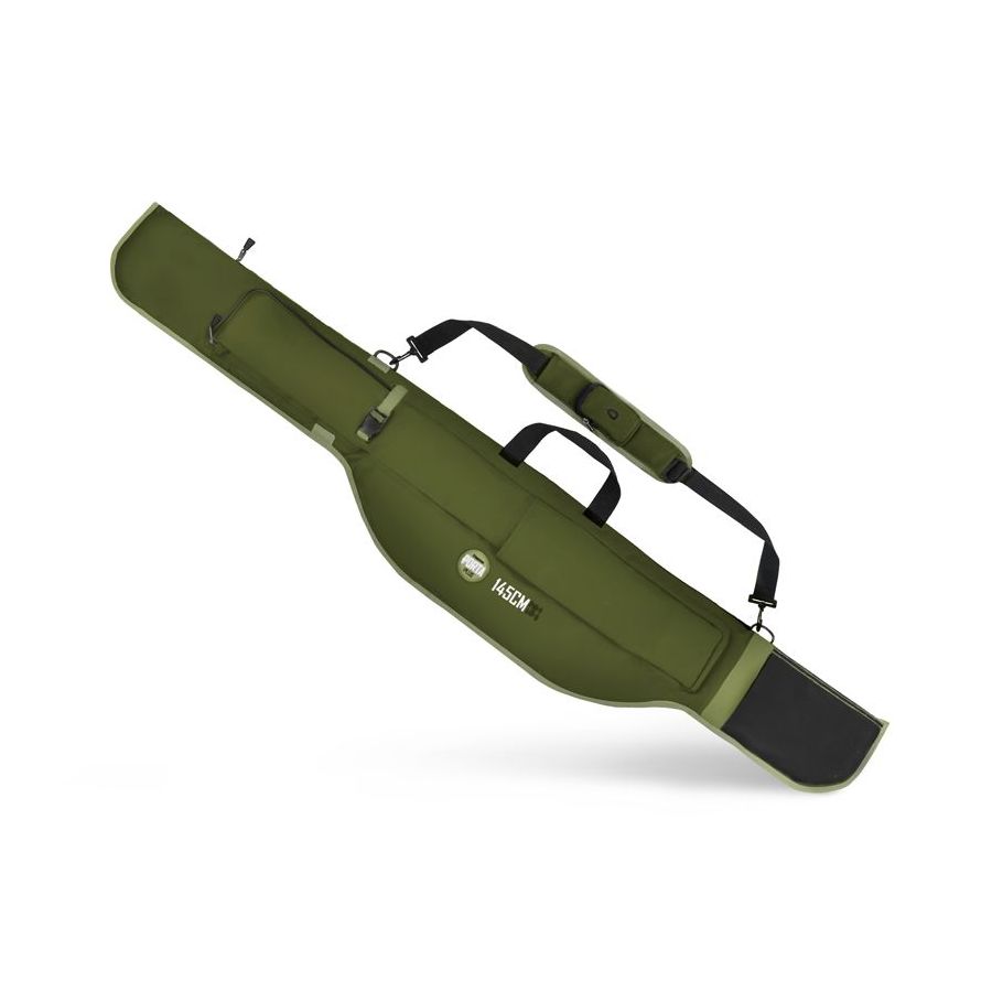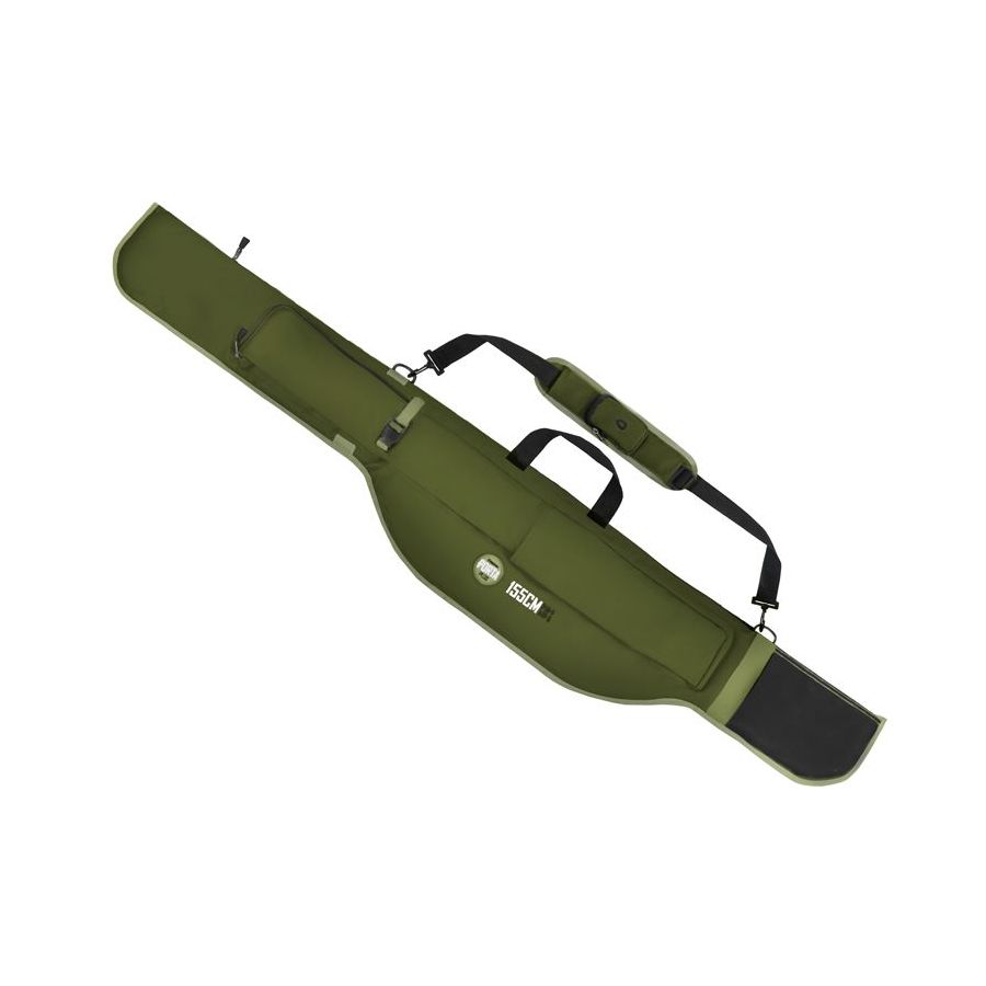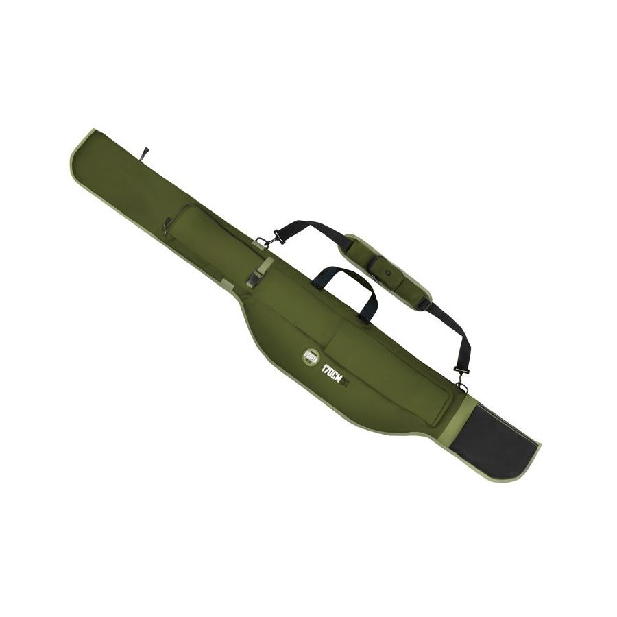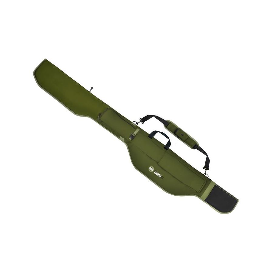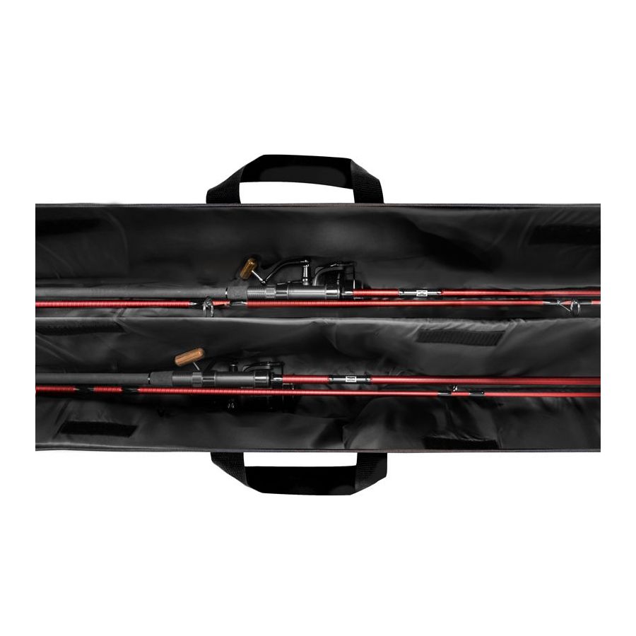 Puzdro je na všetkých stenách vrátane predeľovacej prepážky plne polstrované 6mm, mäkkou výstelkou. Tým pádom nehrozí pri transporte 2 prútov ich vzájomné poškodenie. Obe vnútorné komory na prúty sú fixovateľné pomocou suchého zipsu na ich vrchu.
