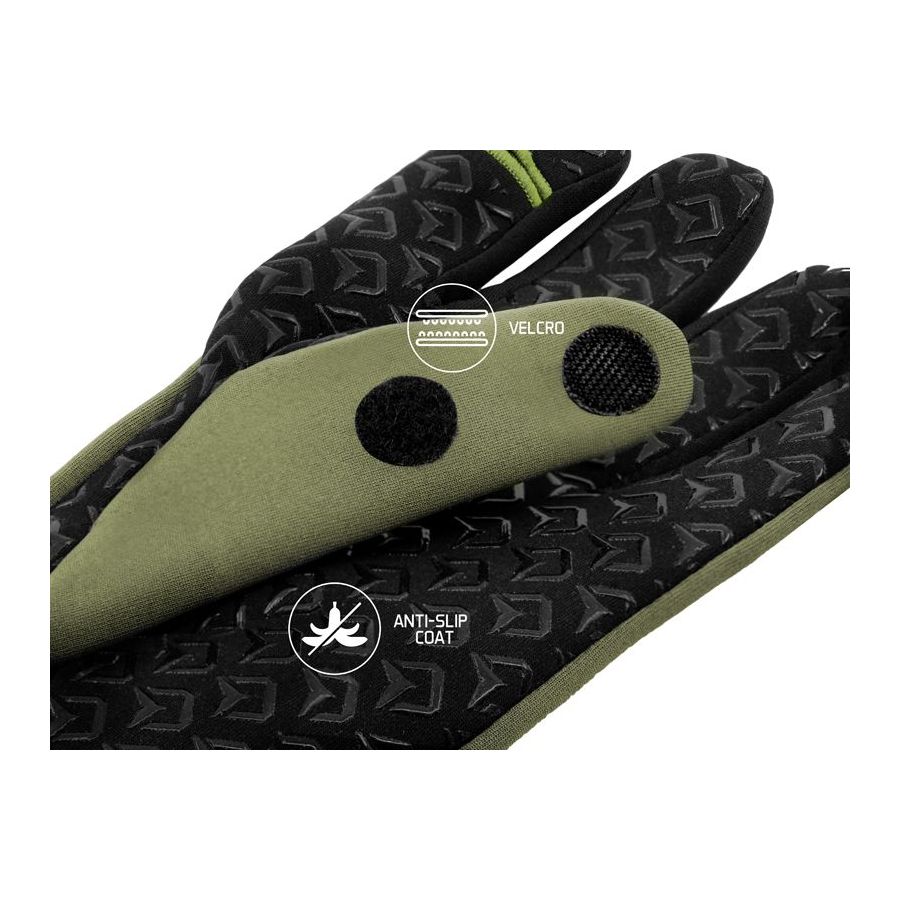 Neoprénové rukavice Delphin RWR Free udržia vaše ruky v teple aj v tých najchladnejších dňoch. Detailné spracovanie rukavíc, posúva level zimnej rybačky na úplne inú úroveň. Veľkým pozitívom je aj pogumovaná plocha na dlani, ktorá je vybavená protišmykovou, pogumovanou vrstvou s inovatívnym designom Delphin loga. Odnímateľné končeky na konci palca a ukazováku, s možnosťou uchytenia suchým zipsom, Vám uľahčia manipuláciu s drobnou bižutériou, či urýchlia úpravu montáže. Aby sa Vám do rukavíc nedostával chlad, či neželaná voda, ich utesnenie je tvorené všitou gumou a dodatočne prispôsobiteľné doťahovacím pásom so suchým zipsom. Farebná kombinácia zelenej a čiernej farby robí rukavice RWR Free dokonalého spoločníka na rybačku ale aj iné voľnočasové aktivity.