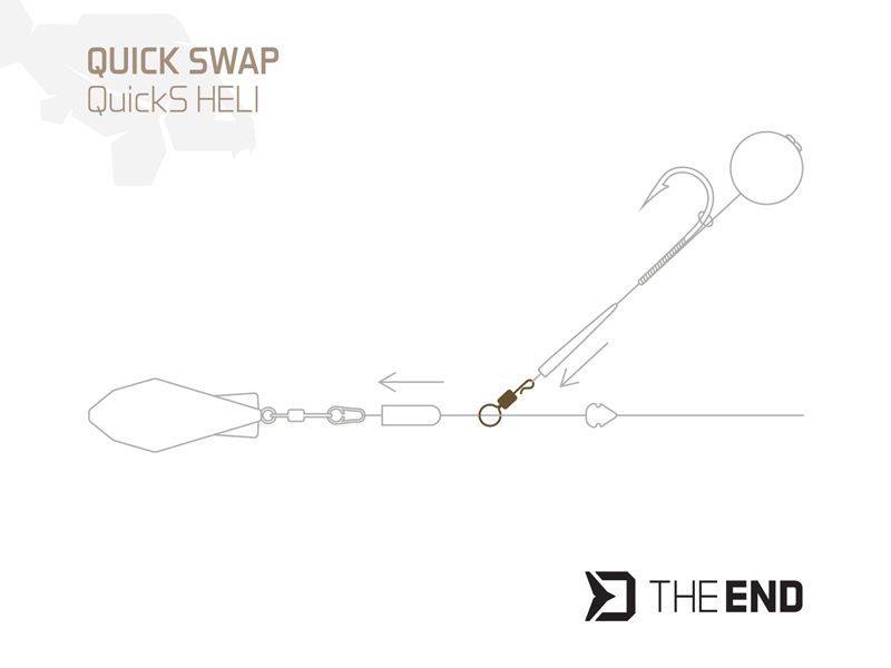 Pevnosť a zväčšené očko, práve to sú hlavné vlastnosti rýchloupínacieho obratlíku Delphin TheEND QuickS Heli, ktorý bol špeciálne navrhnutý pre použitie na helikoptérovej montáži. Vďaka zväčšenému očku poľahky rotuje okolo osi pri nahadzovaní a jeho veľkosť ho umožňuje natiahnuť na nárazovú korálku zo série TheEND. Okrem toho výrazne zrýchľuje a zjednodušuje výmenu nadväzcov.