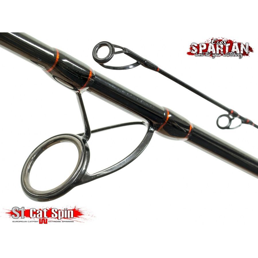 Elegantný dvojdielny prút určený na ťažkú prívlač s brehu. Pevný blank s vrhacou záťažou 70-130 g je ideálny na lov s veľkými a ťažkými nástrahami. Dĺžka 2,7 m zabezpečuje bezproblémové nahadzovanie na veľké vzdialenosti a umožňuje nám efektívne prelovovanie veľkých úsekov na riekach s širokým korytom. Výkonný blank prútu je osadený siedmymi extra pevnými očkami. Prút Spartan CAT Spin má uplatnenie aj pri love sumca na položenú , s podvodným plaváčikom, či pri love šťuky.
