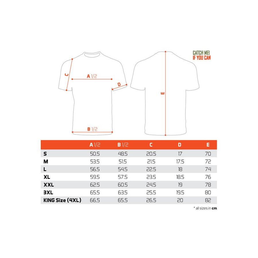 Samotné tričko je vysokej kvality, rovnako ako použitá farebná tlač. Ponúkame ich v širokej škále veľkostí od S, až po KING SIZE (ekvivalent 4+XL, ktorý je vo väčšine krajín označovaný ako XXXXXL). Model King size teda hravo oblečie aj tých najstatnejších rybárov s hmotnosťou 135kg+.