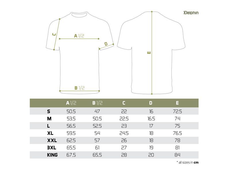 Samotné tričko je vysokej kvality, rovnako ako použitá farebná tlač. Ponúkame ich v širokej škále veľkostí od S, až po KING SIZE (ekvivalent 4+XL, ktorý je vo väčšine krajín označovaný ako XXXXXL). Model King size teda hravo oblečie aj tých najstatnejších rybárov s hmotnosťou 135kg+.