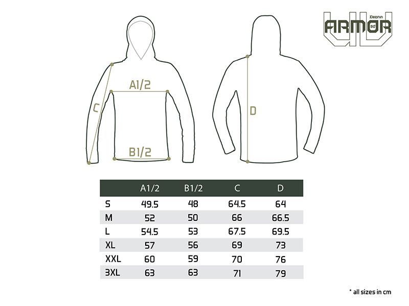 Mysleli sme aj na najprehrievanejšiu časť tela, hlavu. Tričko je vybavené výrazne vyvýšeným golierom a kapucňou, ale taktiež predĺženými rukávmi s otvormi na palec, čo zvyšuje ochranu rúk. Veľkou výhodou príjemného, elastického materiálu je schopnosť rýchleho vyschnutia v prípade v prípade namočenia počas lovu.