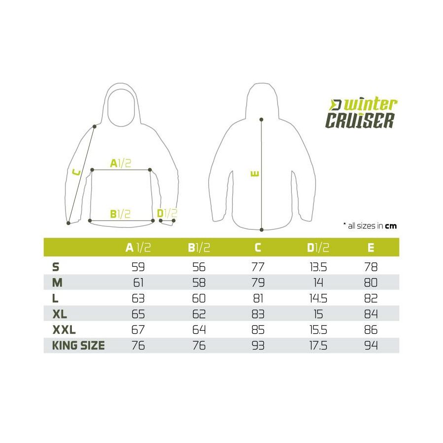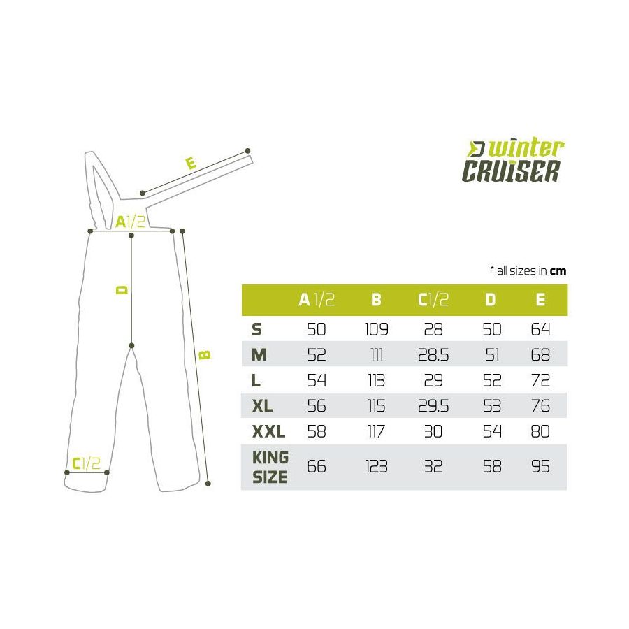 Komplet Winter Cruiser pozostáva zo samostatne predávanej bundy a nohavíc. Vonkajšia vrstva bundy aj nohavíc je vyrobená z vodeodolného materiálu s vodným stĺpcom 5000mm a kompletne podlepenými švami. Tieto parametre zaručujú maximálne pohodlie, teplo a ochranu pred dažďom počas vašich rybárskych výprav, či iného pobytu v prírode.